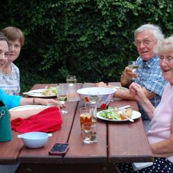 What better way to spend a summer’s evening than sitting in a garden by the river in Oxford, enjoying a Pimm’s and supper, and getting out on the water. We had one group out in a punt with drinks in hand, two of us paddling a canoe and one person on a paddle board. Plus a few encouraging us from the riverbank. Great fun!!